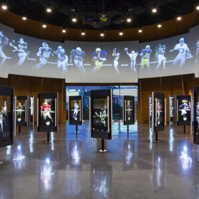 The signature experience of the hall is the new Roger Federer hologram. This exciting exhibit puts the visitor in the room with the greatest pro tennis player of all time as he provides insight into his own career and personal anecdotes about the sport he loves. A hologram projector system is used to create the illusion that Federer is physically present in the space.